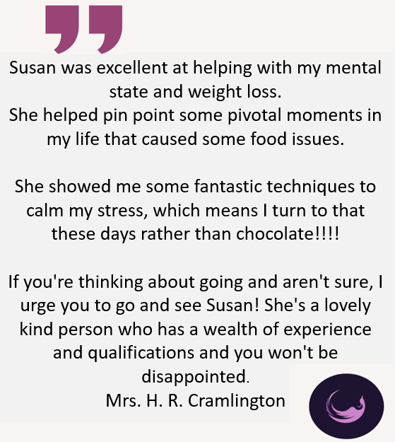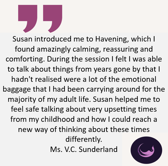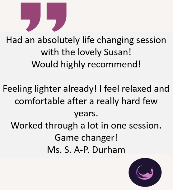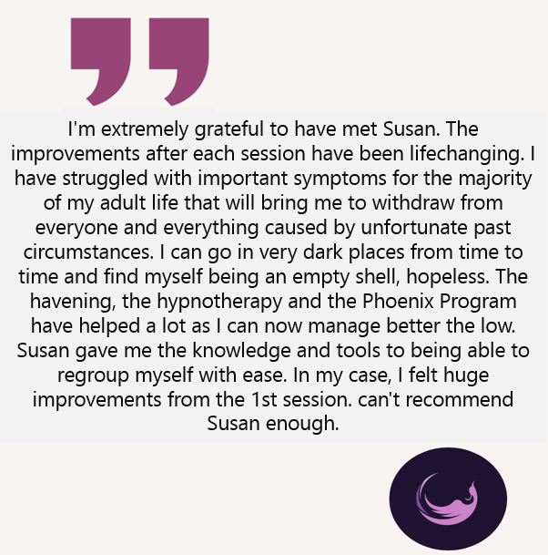 Susan uses a combination of Hypnotherapy, Neuro-Linguistic Programming, Internal Family Systems (or “parts” work) and Havening Technique TM , a psychosomatic trauma therapy closely related to EMDR and EFT. No two sessions are the same!