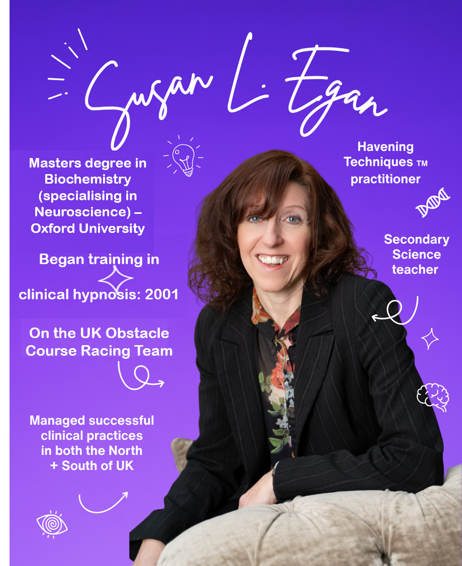 Wanting to understand “how it all worked”, Susan gained a Masters degree in Biochemistry from Oxford University, specialising in Neuroscience, in 1999 and began training in Clinical Hypnosis in 2001 with the London College of Clinical Hypnosis (LCCH).